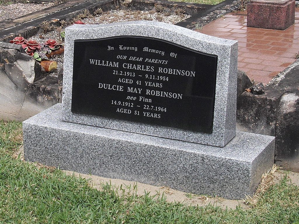 William Charles Robinson and his wife Dulcie May were buried in 1954 (09/11/1954) and 1964 respectively. They are buried at: